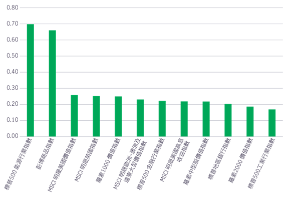 由地緣政治因素推動的油價變動通常影響較短暫。從歷史相關性的數據分析可見,不同的資產類別在油價上升期間往往表現各異。不出所料,能源類股與油價的相關性最高。與成長型產業相比,廣泛能源產業在價值型類股的佔比通常較高。據歷史數據,工業為第二大相關性產業,反映其為能源產業提供設備的角色,以及其涉足在航空航天及國防相關業務。這些領域在地緣政治緊張時期可能有較佳表現。